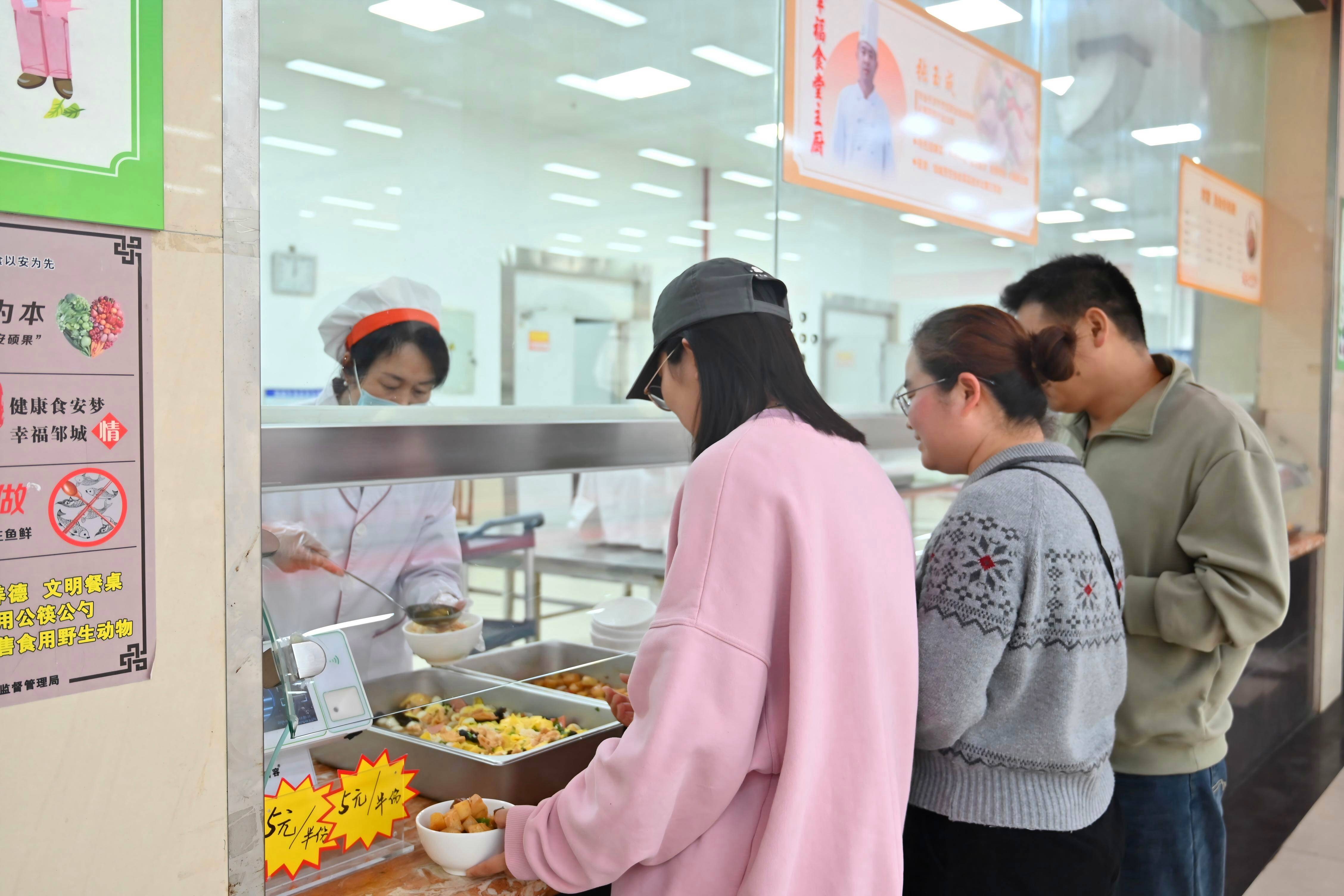 “你还不知道?现在食堂定时上新品,连饭店里的香辣瓦块鱼、风味茄子都能吃到,去晚了可就没啦!”