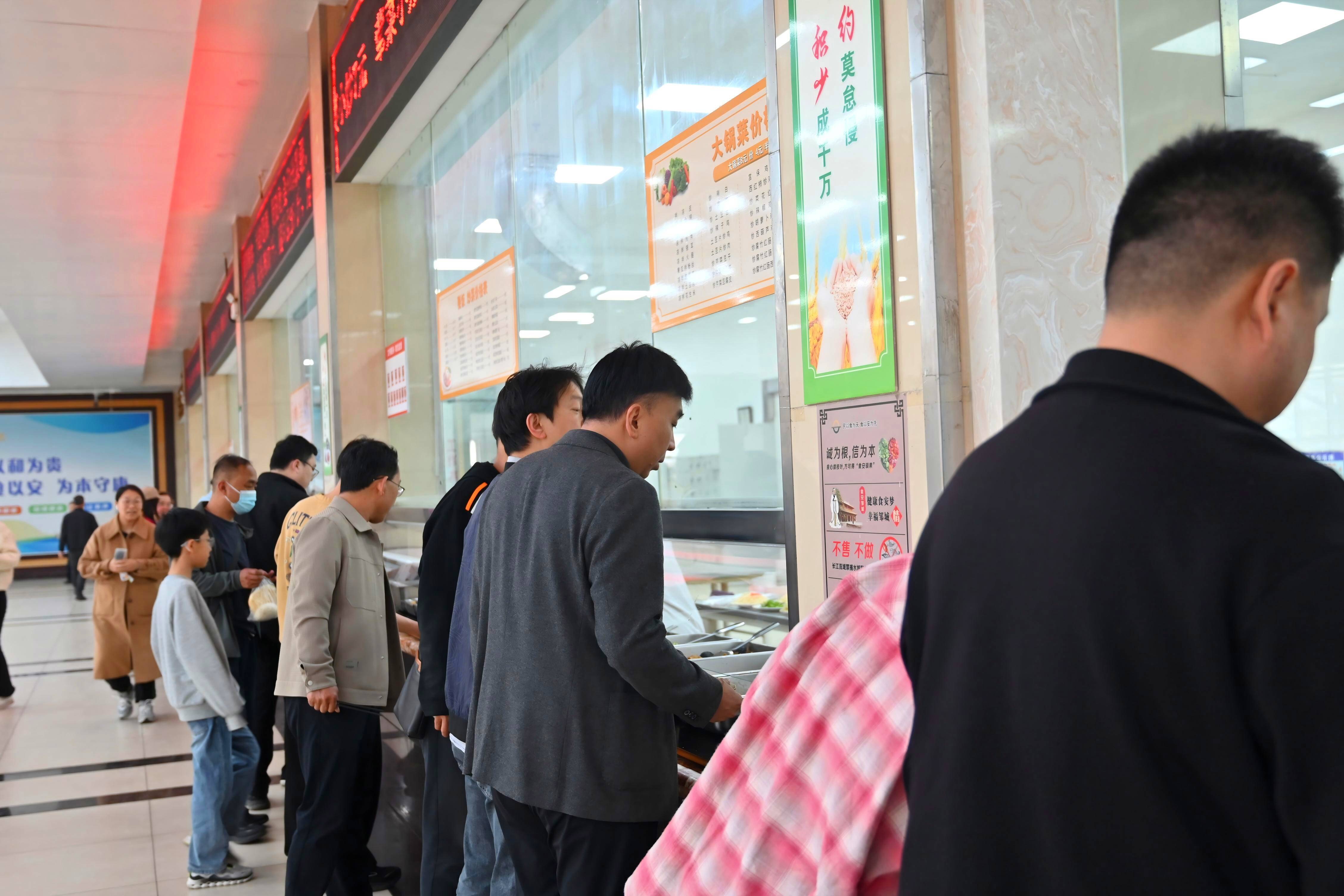 近日,该矿职工下班后步履匆匆,不约而同直奔职工食堂各个窗口,镜头里留下的,全是一个个“奔向”饭菜的背影。