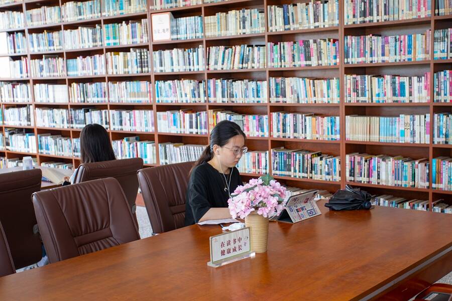 走进泰和书院,假山鱼池、绿植掩映,一面藏书2万余册的“书墙”直抵屋顶。儿童阅览区采用彩虹色卡分类,职工阅览区设有习近平书单、茅奖鲁奖诺奖精选、“清北”书单等特色书架,可同时容纳上百人阅读。