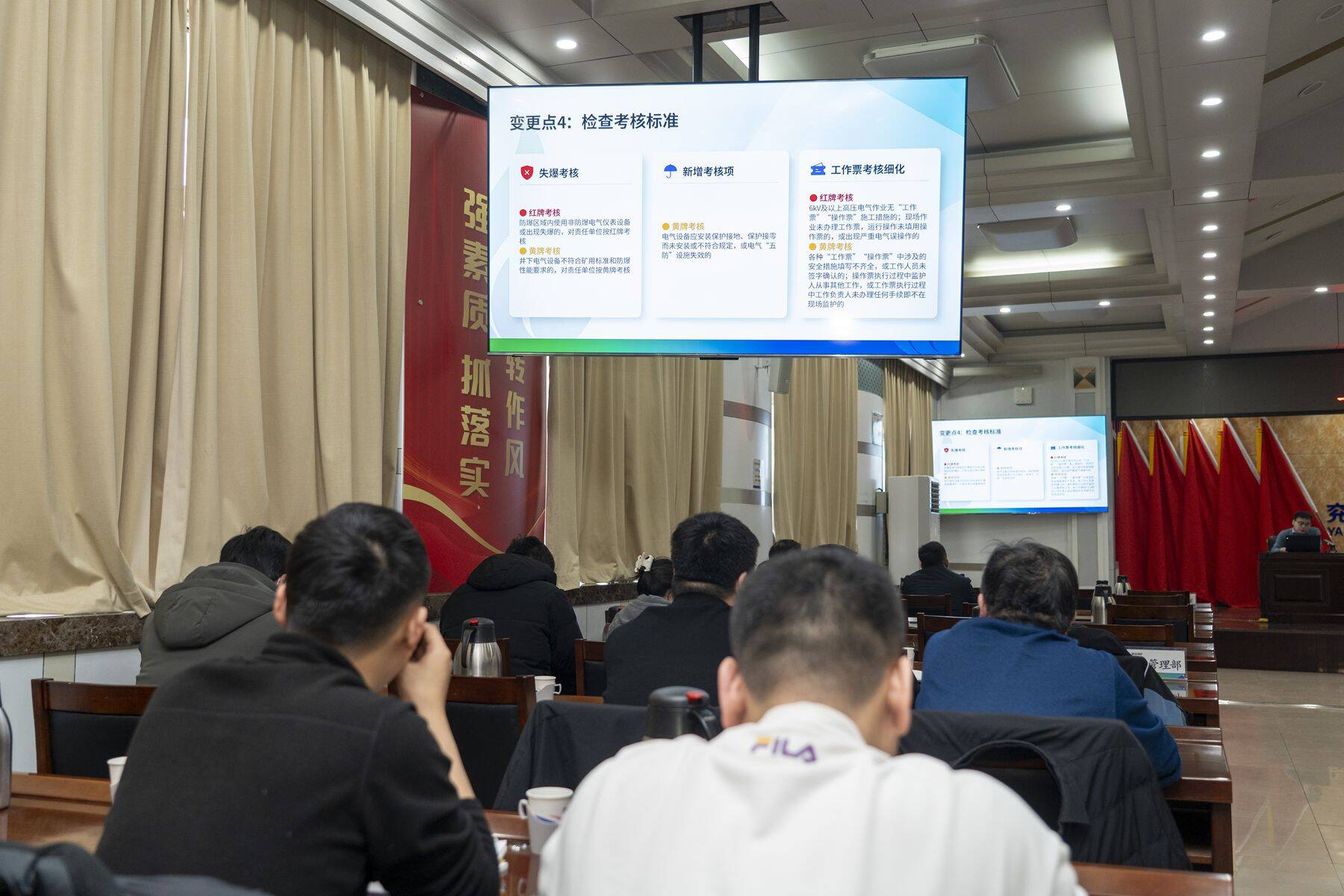 “制度落实不到位是最大的隐患。”该矿坚持用制度管人、用流程管事,让安全制度从“写在纸上”真正“刻在心上、落在地上”。制定环节,广泛吸纳一线班组长、技术骨干、安监员的意见建议;执行环节,按照“先试点、再反馈、后定稿”的原则持续优化,有效破解制度与现场“两张皮”的难题。