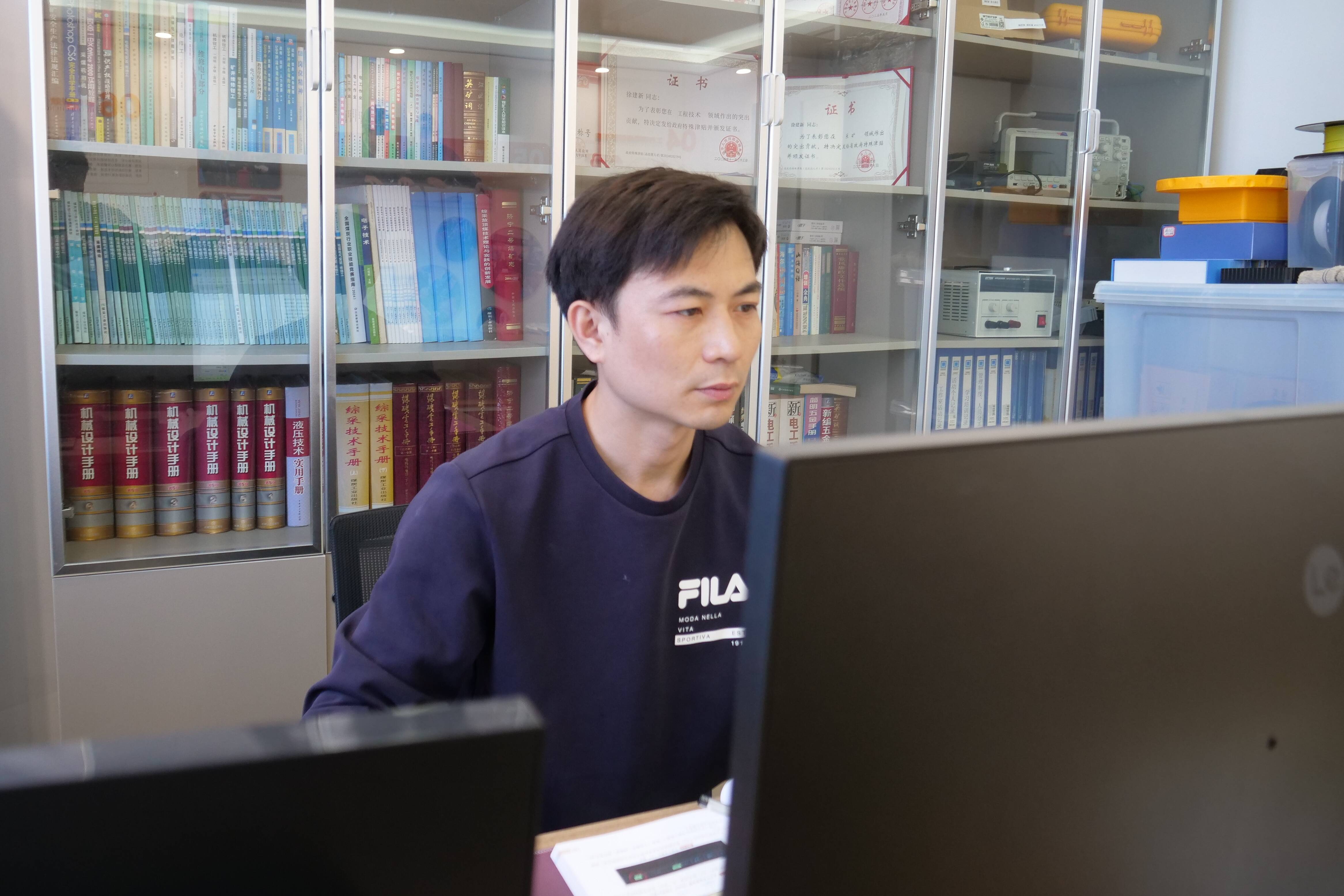 传统电缆吊挂需8—9人协同作业,效率低、风险高。他自主革新电缆吊挂工艺,在单轨吊上集成电缆储存单元,实现快速收放、集中管理,作业人员缩减至4—5人,每月仅人工费就节省7300余元。