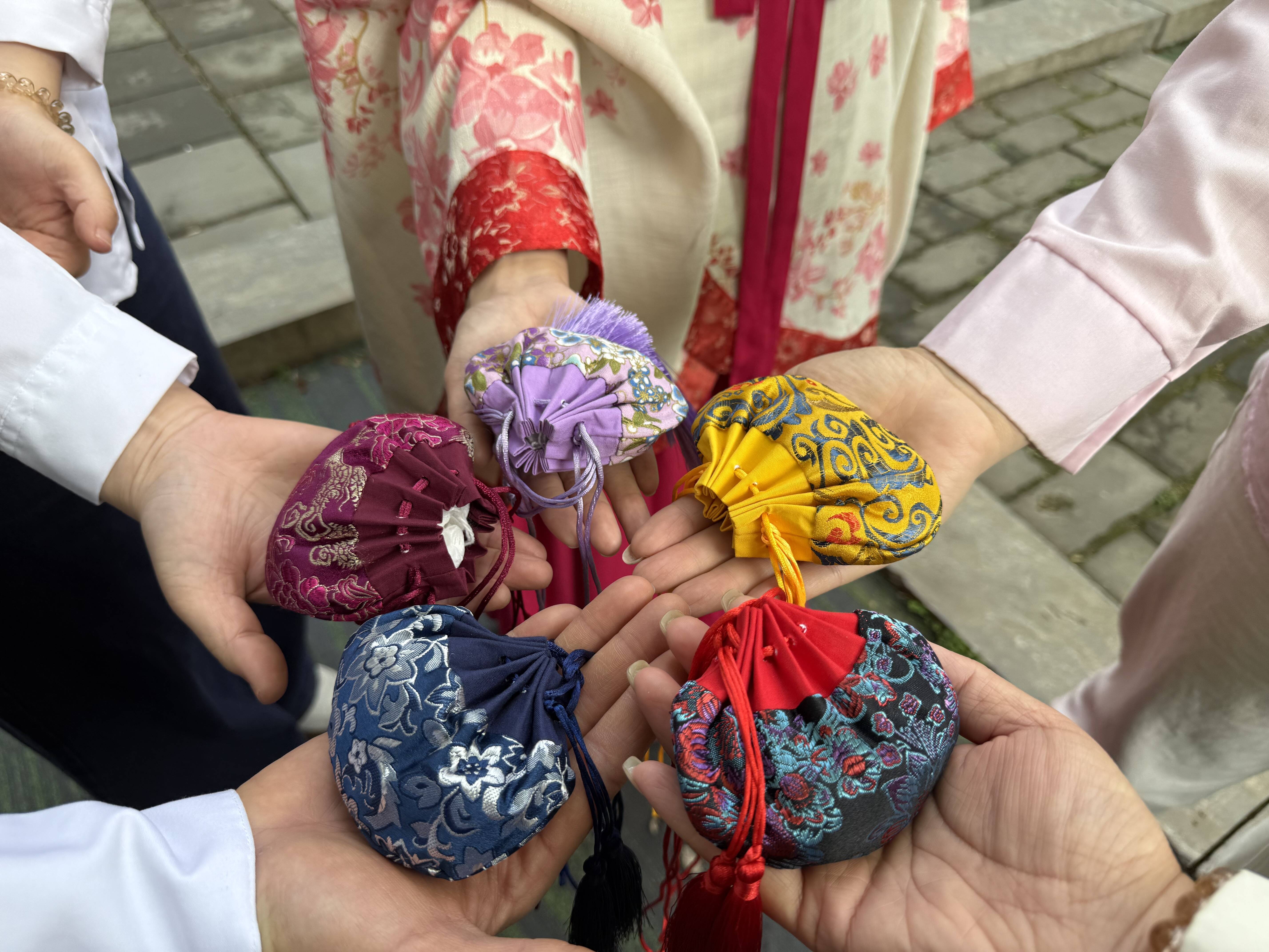 而让这场穿越之旅真正“余香绕梁”的,还有后半程的神操作——阅读分享刚落幕,女工们转身围坐香案,开启“指尖上的国风体验”:手作香囊。